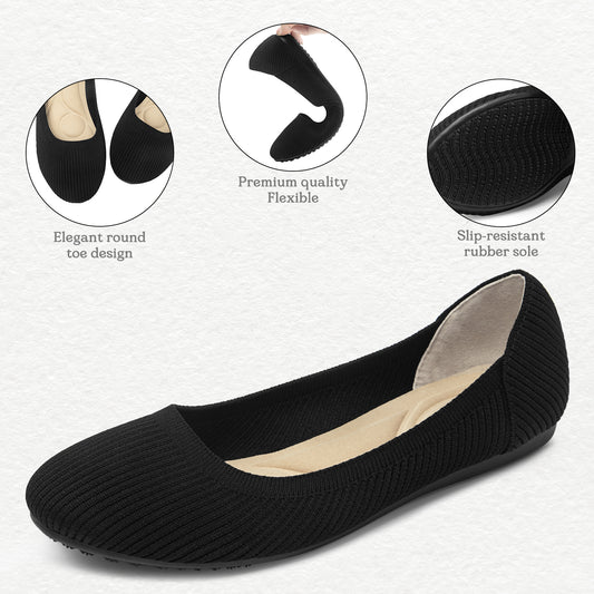 AEDAMURRA Black Flats for Women, Round Toe Ballet Flats Shoes with Arch Support, Washable Comfortable Knit Flats for Women Dressy Wedding Work Office Casual