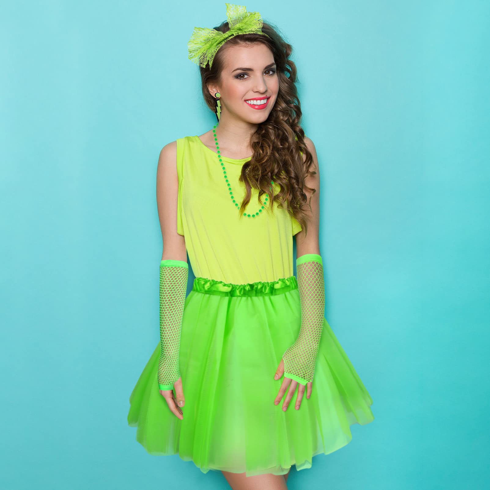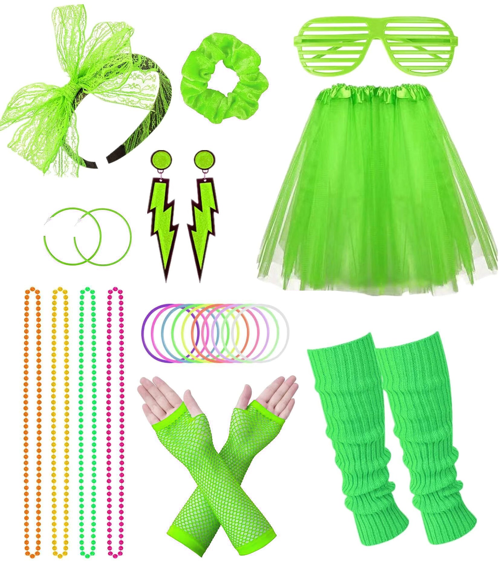 Loritta Women 80s Neon Costume Set Outfit Accessories Set Earrings Fishnet Gloves Leg Warmers Necklace Bracelet Headband