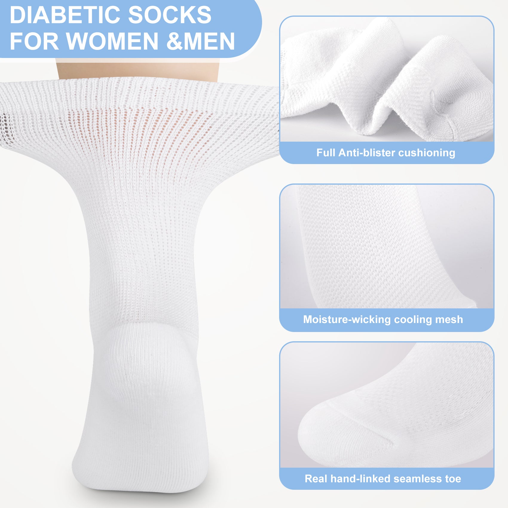 - Unisex Fit: This socks not only diabetic socks for women but also diabetic socks for Men. Its moderate elasticity.At the same time, it is also a womens crew socks that fits snugly around the ankle without causing any discomfort or slipping, providing a comfortable wearing experience for both men and women.