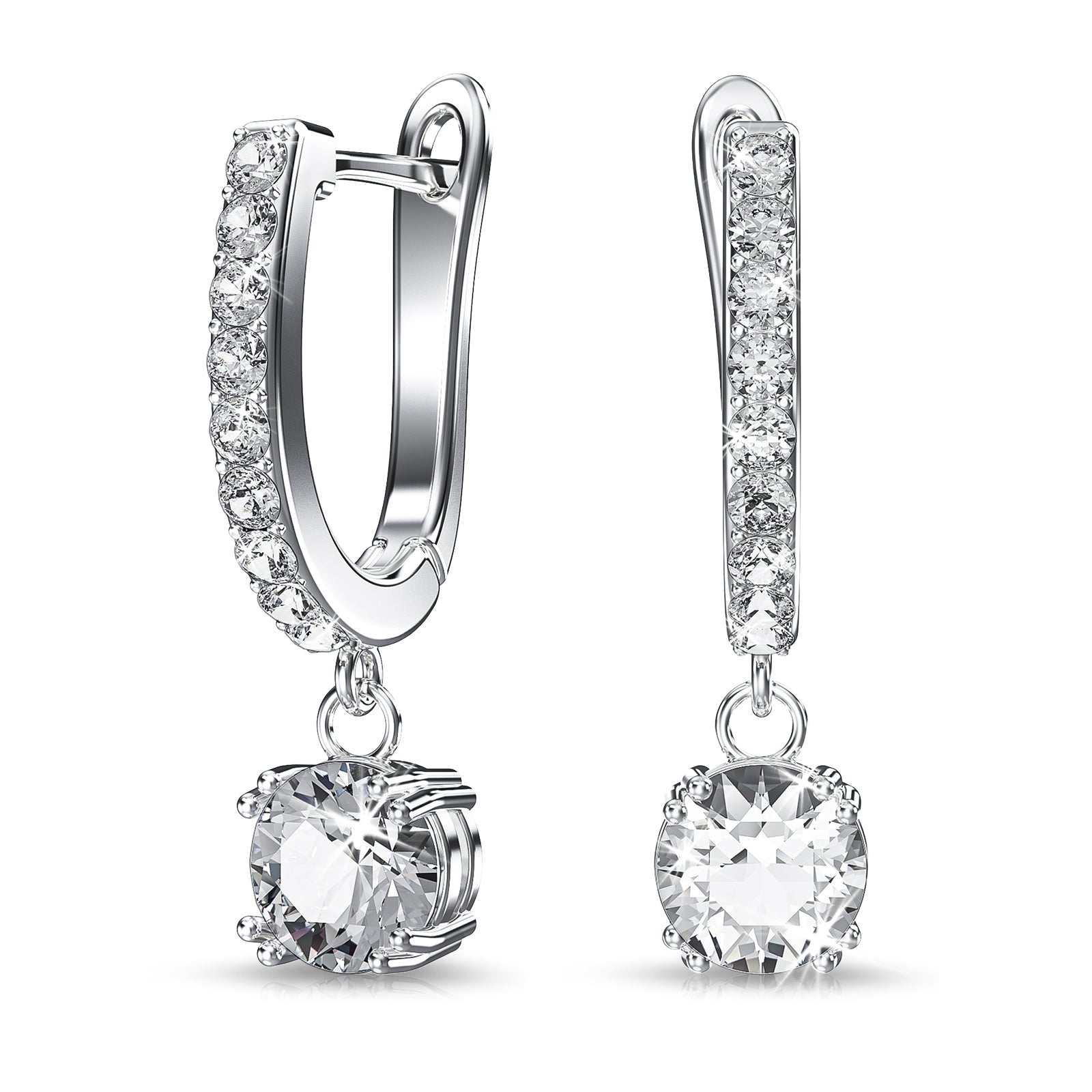 Loritta 18k White Gold Plated Dangling Earrings Gewelry with Swarovski Crystals Best Gift for Mother's Day