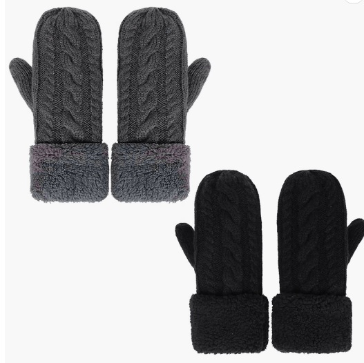 Warm Lining: Combat the cold in our functional mittens that feature a crochet knit design on the outside and have a fleece interior lining that will keep your hands cozy and warm throughout the winter season.
