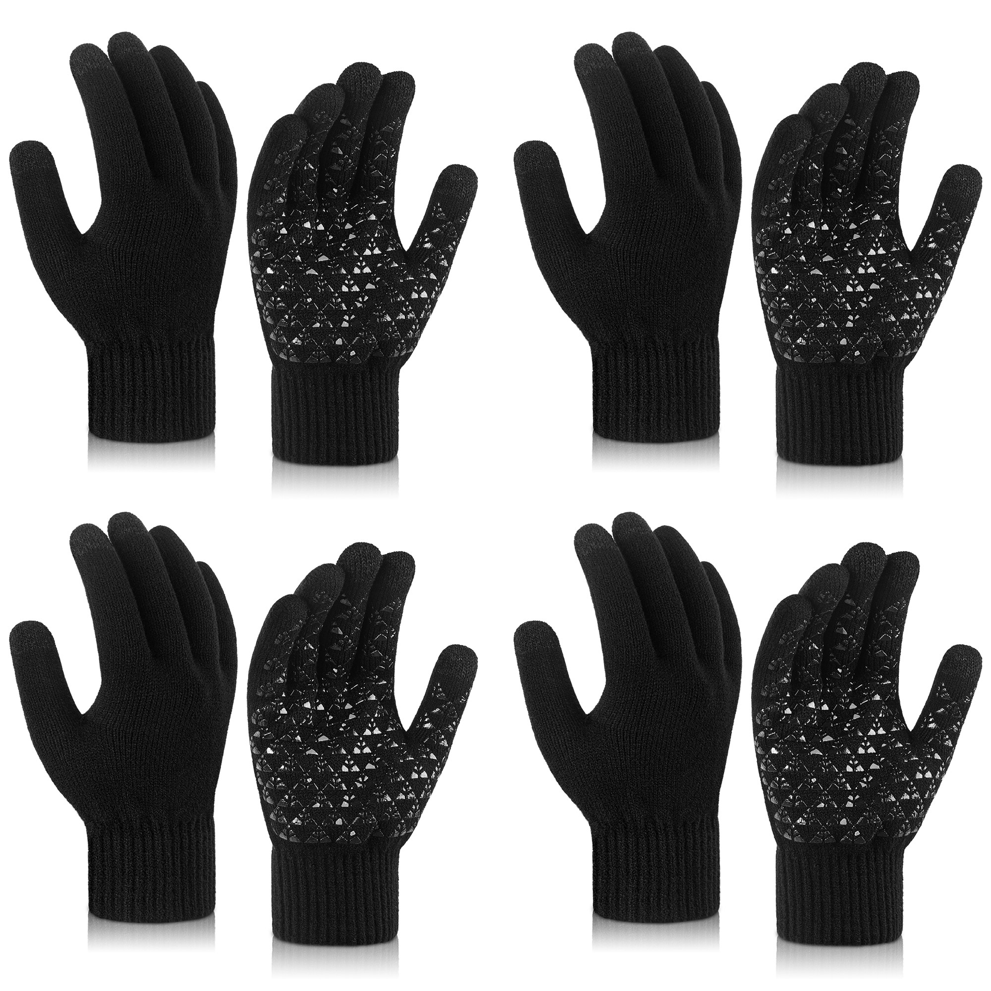 Loritta 4 Pair Winter Cycling Touch Screen Gloves Bike Elastic Cuff Gloves Warm Knit Women for Outdoor
