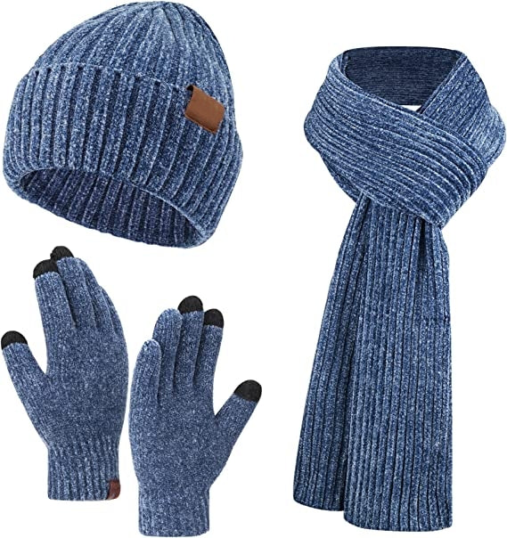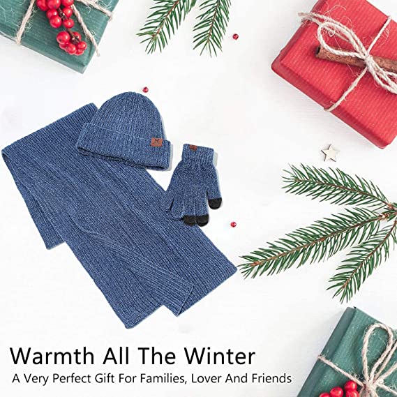 Long Knit Scarf: The oversized scarfs keep your neck warm, various ways to wear them, make your own new design, around your neck single, double loops, one loop, shawl, shrug, wrap and find your favorite.Outstanding Gift Combo : Package Included: 1¡ÁWinter Hat + 1¡ÁTouchscreen Gloves + 1¡ÁLong Scarf (3 in 1 set). With our warm beanie knit hat scarf and gloves set, create a nice and fashionable look design, that matches with most formal and casual clothes. Outstanding gift combo to give to friends & family.