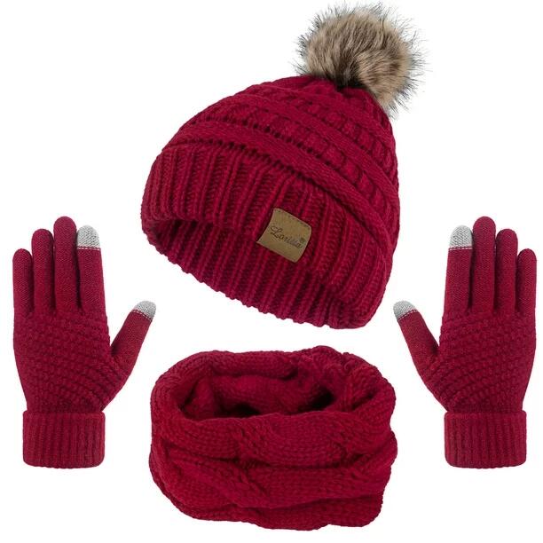 Stylish design: the warm knitted hat with fur pompom on the top feels comfortable, adding fashion sense and cuteness to the hat; the circle loop scarf has a unique knitting pattern, which has a sense of hierarchy, and it is able to collaborate with all kinds of clothes; the gloves have a touch-screen design and can be worn to operate a phone or tablet, very convenient to use