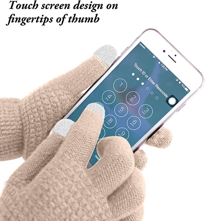 Premium material: high-quality acrylic, soft and skin-friendly, comfortable and warm, stretchy enough for you to use easily; touch screen design on fingertips of thumb, and index finger, let you convenient to use touch screen device without removing the gloves from your hands, prevent your hands from getting cold, with warm plush lining material, feel very comfy and soft