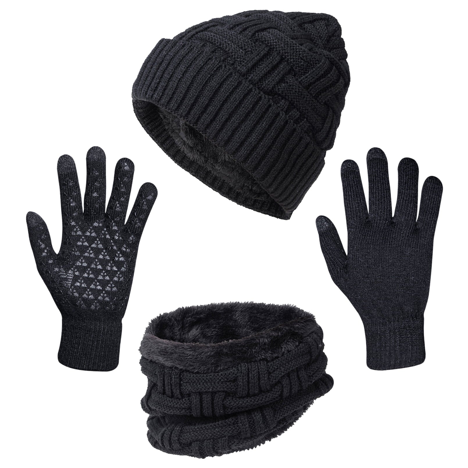 Loritta 3 Pacs Winter Beanie Hat Scarf and Touch Screen Gloves Set for Men Women