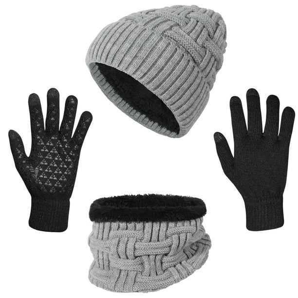Loritta 3 Pcs Winter Beanie Hat Casual Scarf and Touch Screen Gloves Set for Men Women