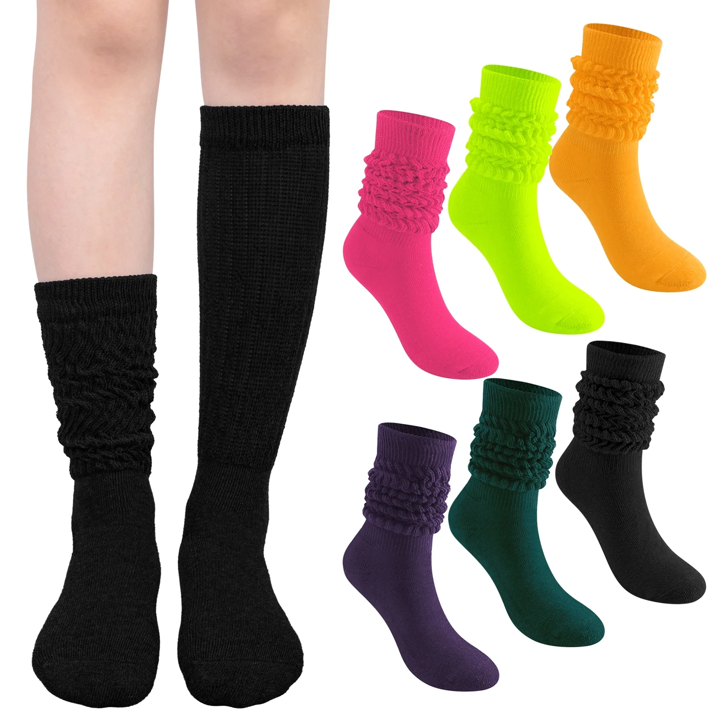 Our socks come in a pack of 6 pairs and are made of soft and moisture wicking fabric. This slouch socks comes in various colors. There are three different ways to wear scrunch socks, and you can adjust the length according to your preferences to suit all seasons. Slouch socks for woman are suitable for various indoor or outdoor occasions and can also be paired with different shoes. Scrunchy socks for women are the perfect gift choice for daughters or friends.