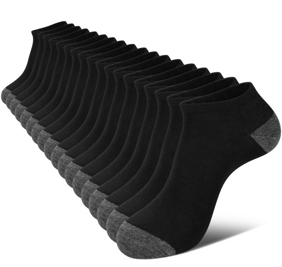 Loritta 18 Pairs Mens Ankle Socks Size 6-12, Low Cut Men's Socks Value Pack Breathable Black