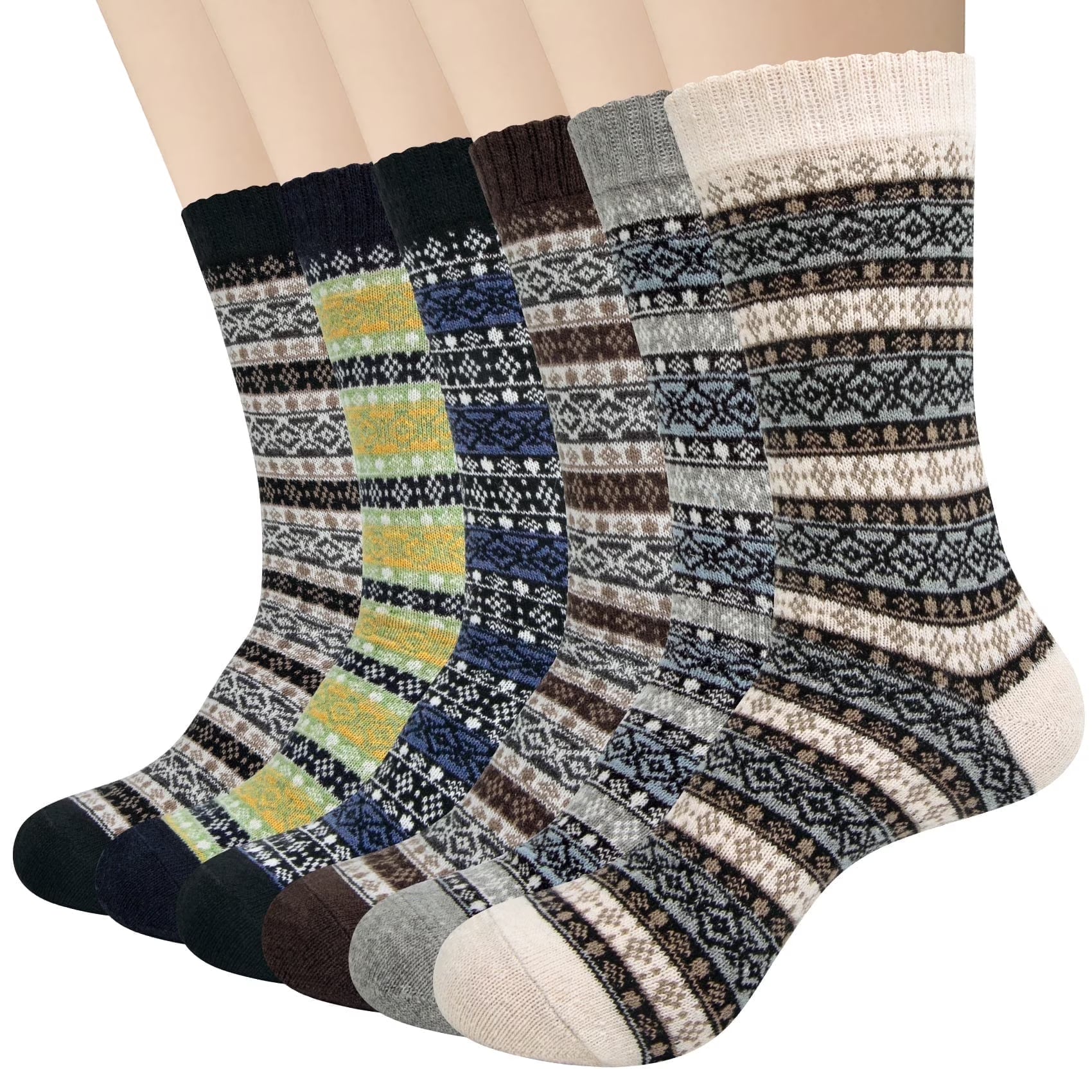 Loritta 6 Pairs Mens Wool Socks Winter Warm Thick Socks Knit Causal Crew Socks for Men