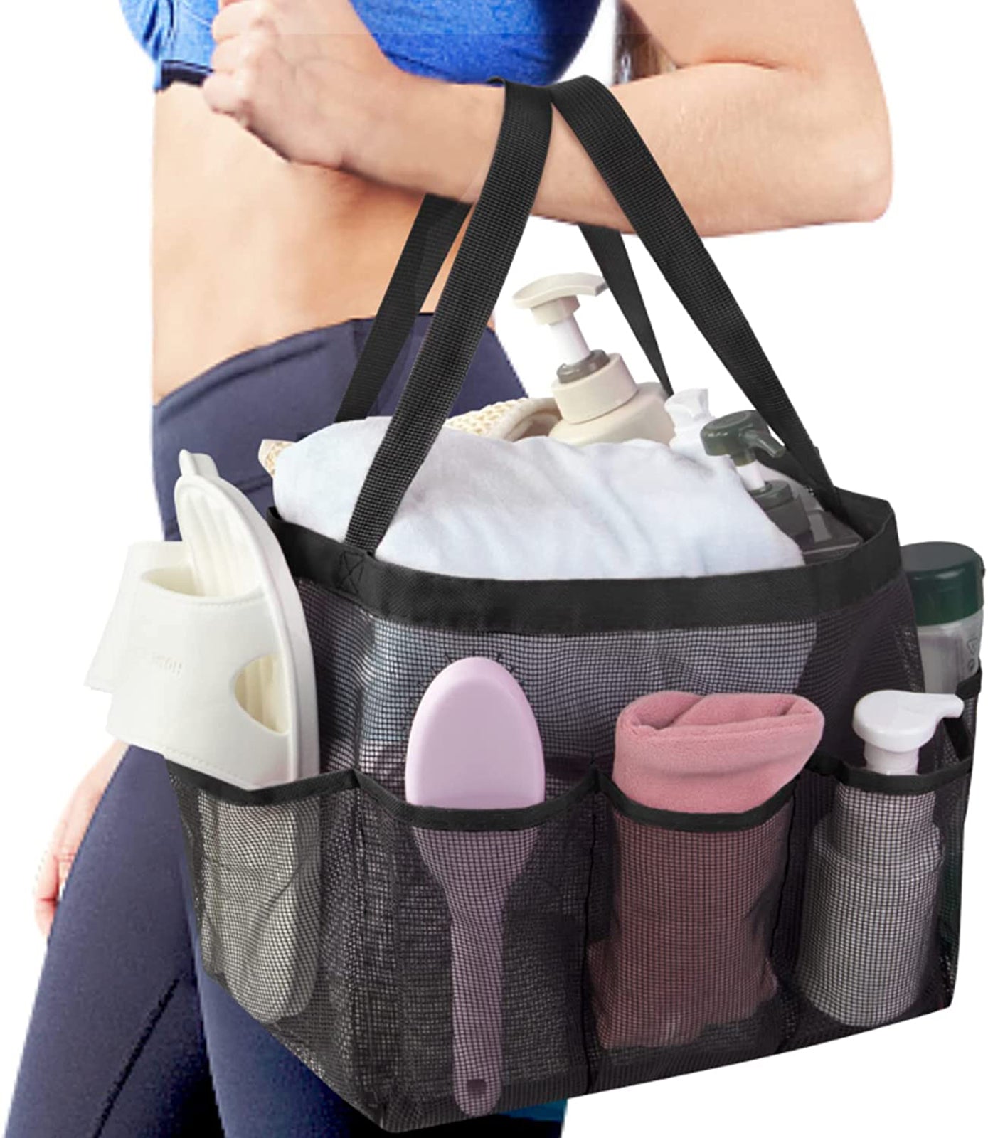 Loritta XL Mesh Shower Caddy Portable with 8 Pockets Large Capacity Quick Dry Dorm Shower Tote Bag