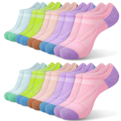 - No Boring Colors: Forget about black and white, our no show athletic socks come in an array of fun and funky colors that will brighten your day! Look at the pictures and you will know what we mean! High cotton count means that they will not have lumpy bits after a few washes and remain soft to the touch.
