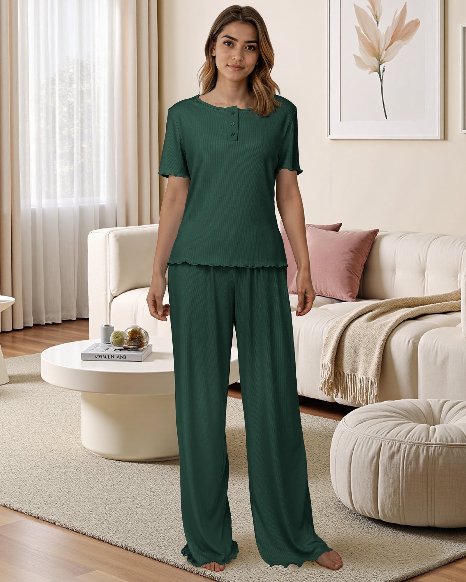06091982628027 Loritta woman pajamas is made of comfortable and elastic knitted ribbed fabric, giving the skin a comfortable feeling. The women's sleepwear set ensures optimal comfort during sleep or leisure activities. Short pajamas for women can be paired with your favorite jeans or skirts, The open button design showcases different styles of women's pajamas. There are pockets on both sides of the pants for storing mobile phones or other items.