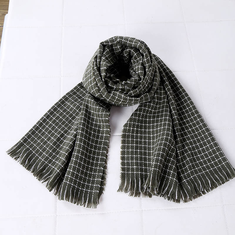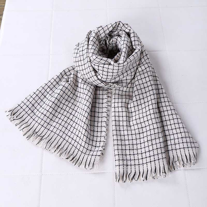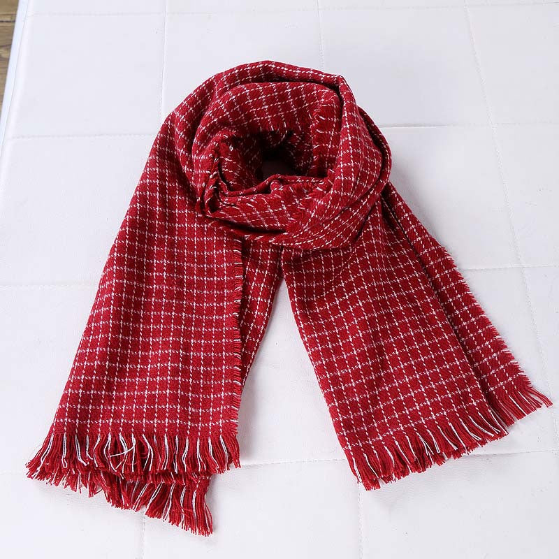 Small fresh cashmere double-sided small checkered long scarf all-match - Loritta