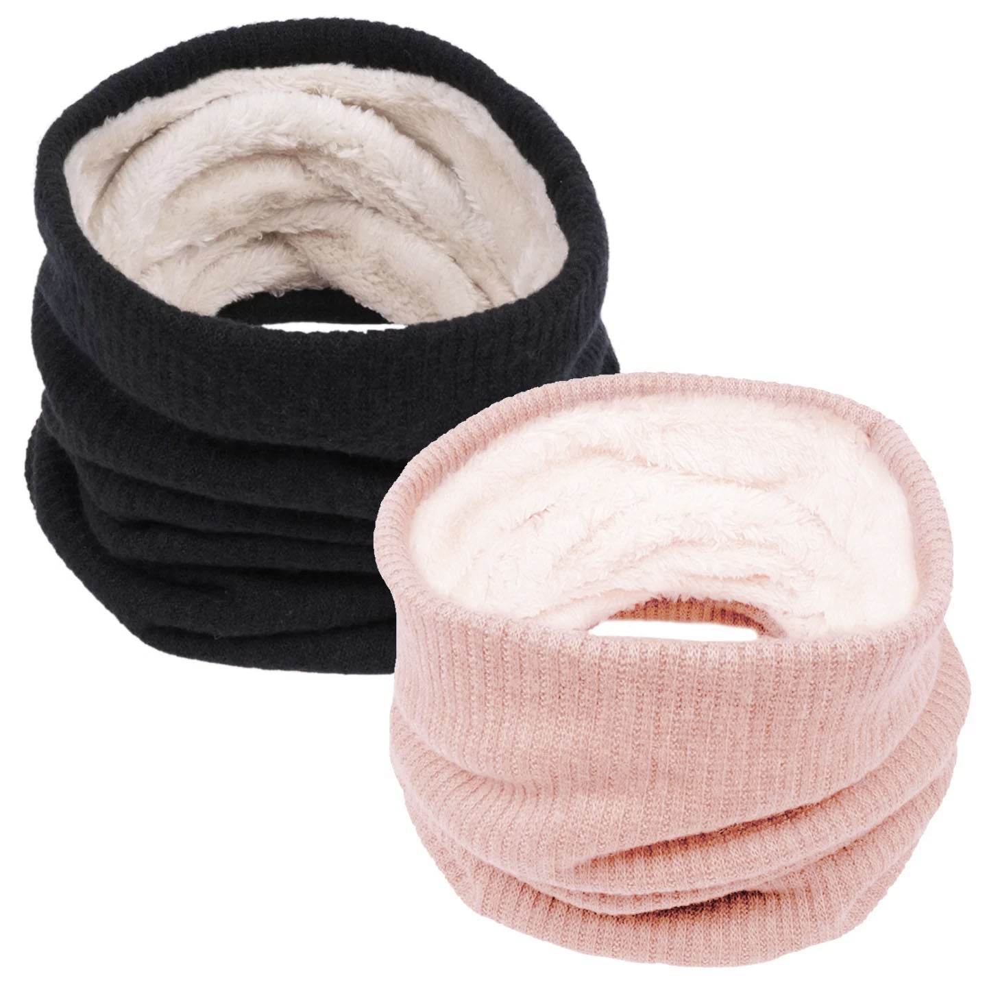 Loritta 2 Pacs Scarf Winter Double Neck Warm Knit Wool Lining Scarf