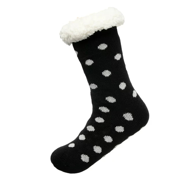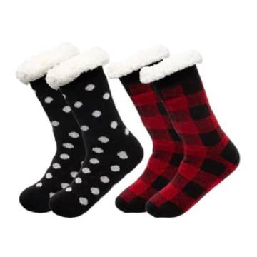 Loritta 2 Pack Womens Thick Knit Sherpa Fleece Slipper Socks Grippers