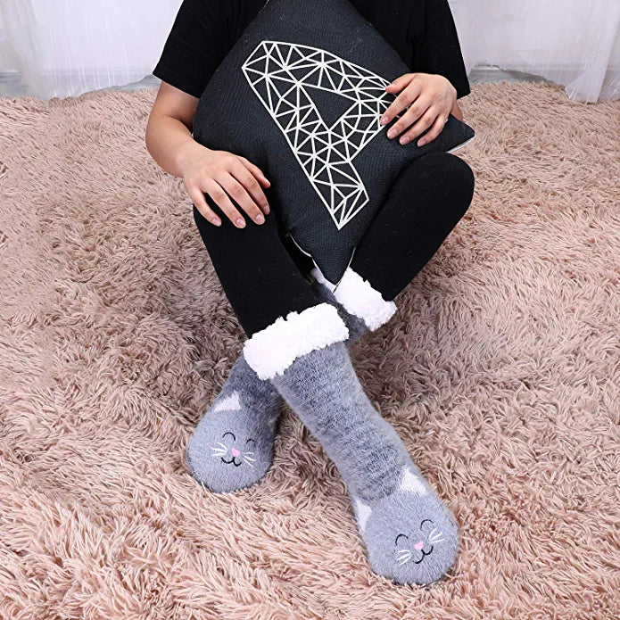 Loritta Womens Fuzzy Slipper Socks With Grippers Cozy Warm Cute Animal Gifts