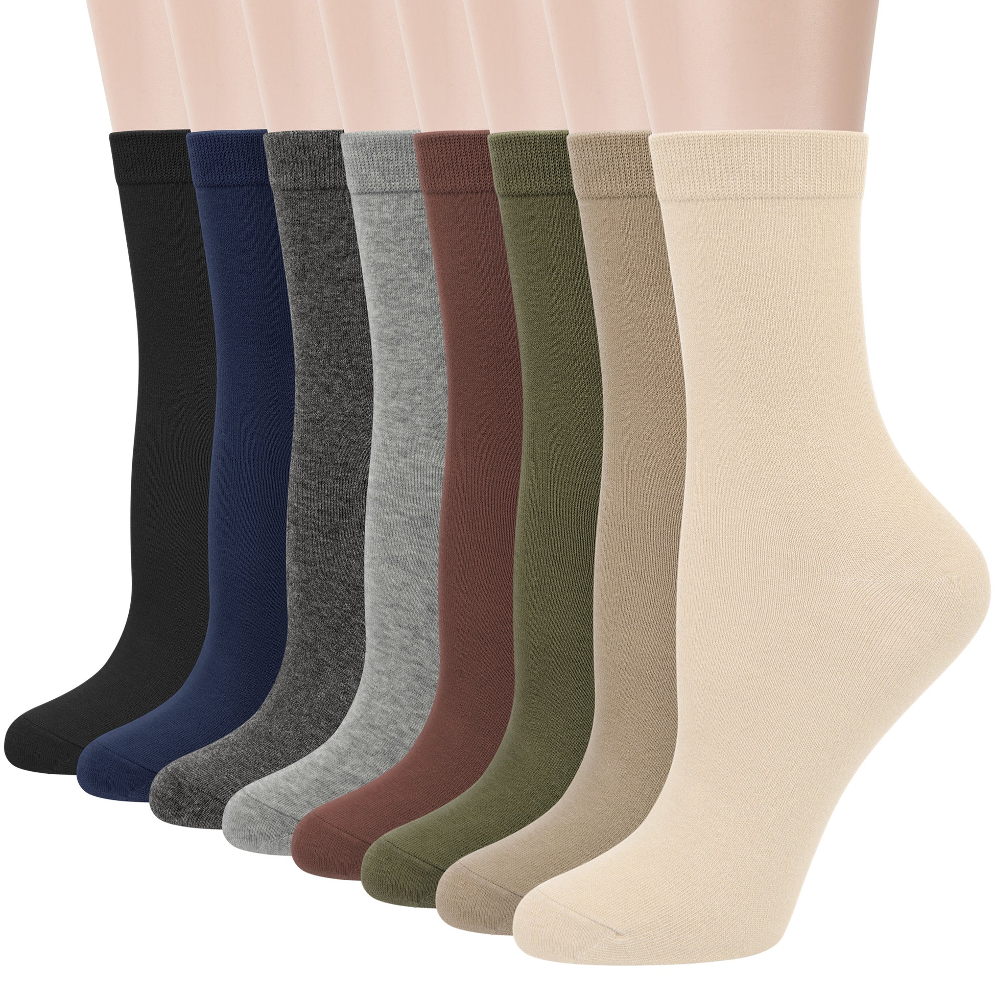 Loritta 8 Pairs Crew Socks Solid Casual Cotton Socks Athletic Dress Socks