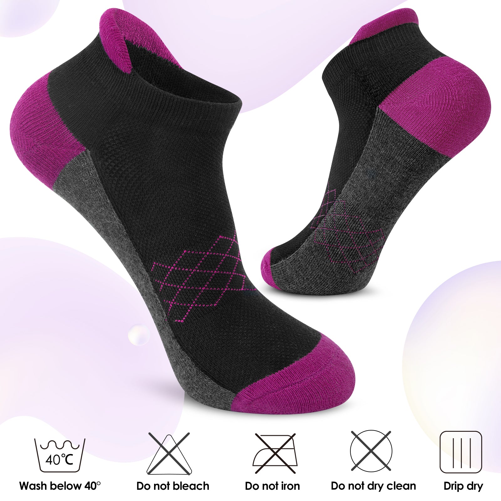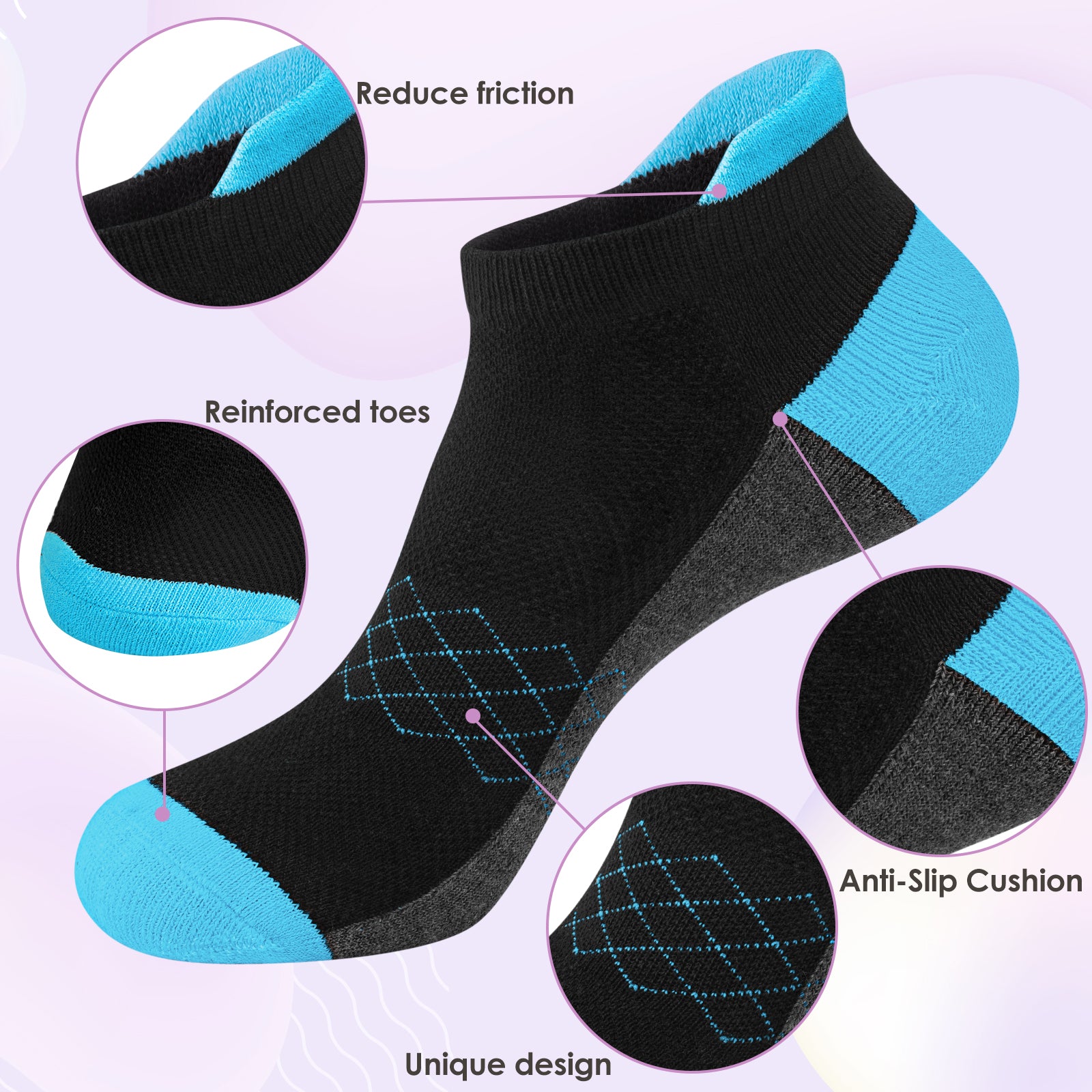 High quality material: This women's sports socks are made of high quality fabric, which is comfortable and durable, and has elastic fit. These women's running socks with cushioned soles reduce excessive friction with the shoes, providing excellent comfort and dual protection for your feet.