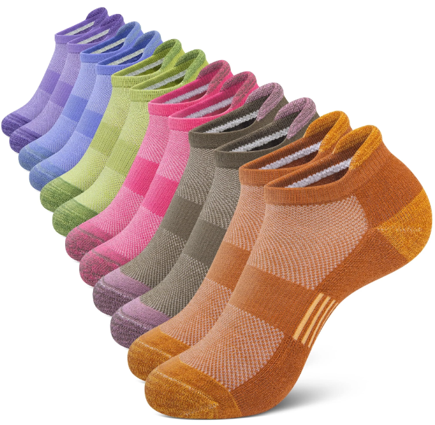Loritta Womens Ankle Socks, Athletic Running Socks Cushioned Colored Socks 6 Pairs, Size 6-8