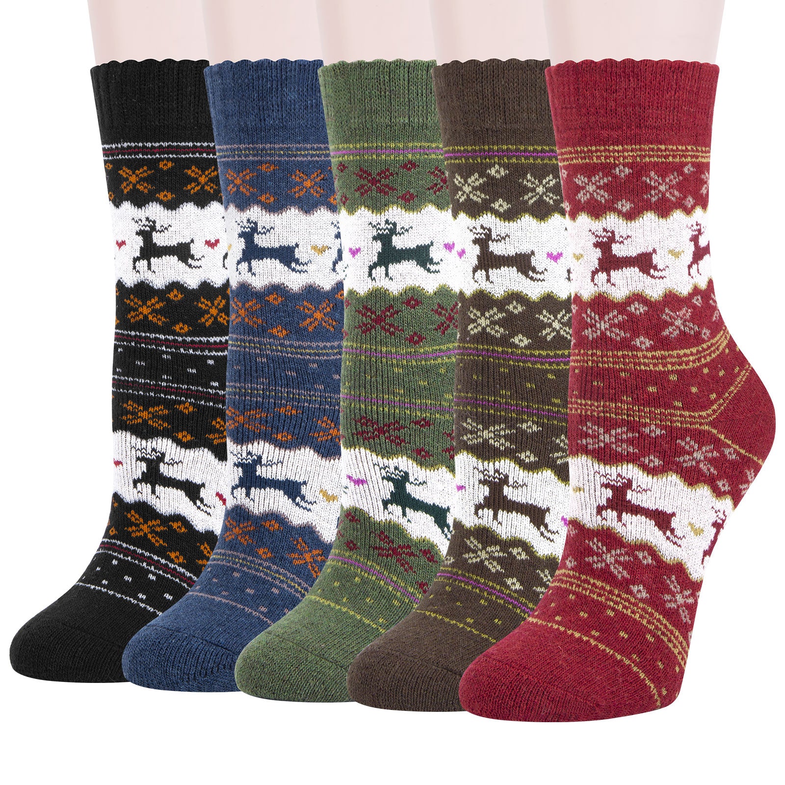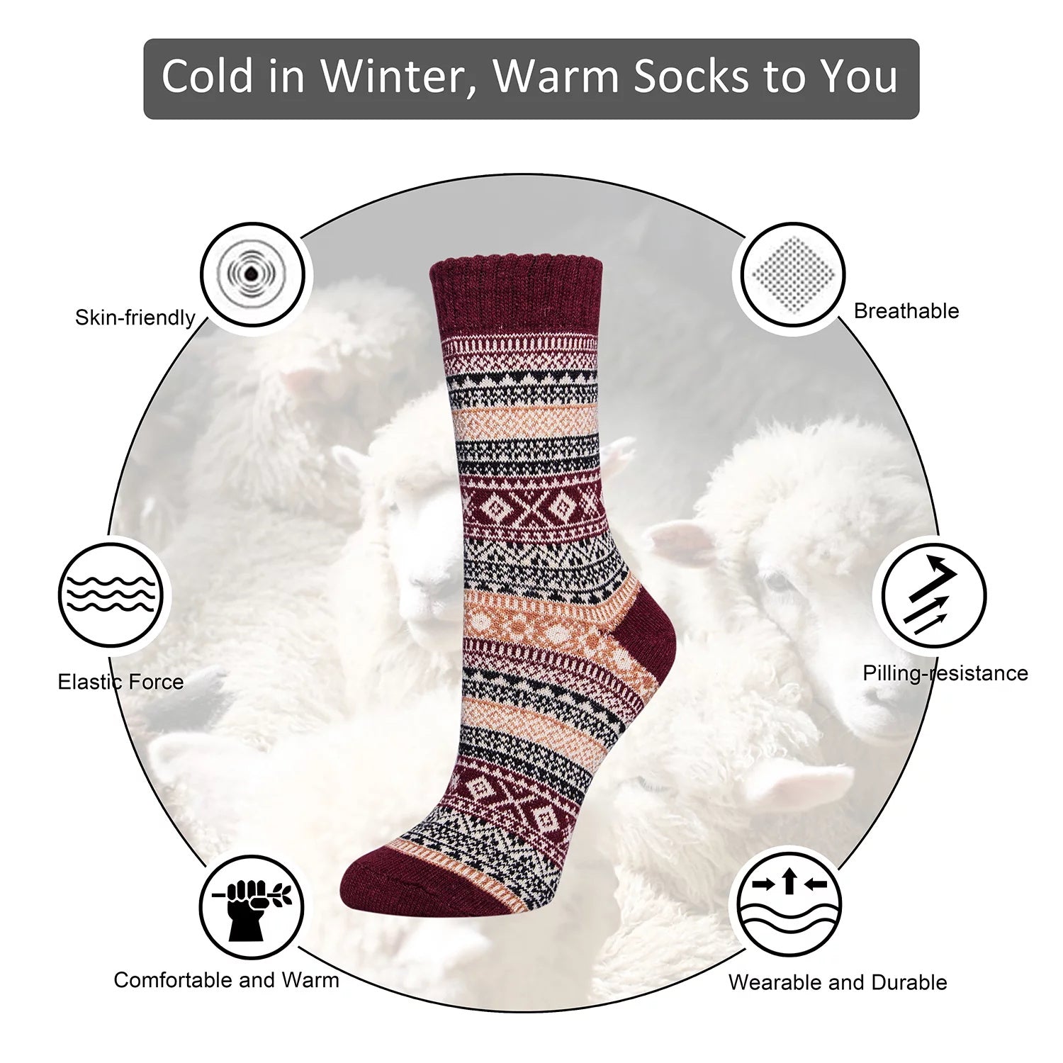 Soft & Comfortable: Our winter wool socks for women are made of wool, cotton, polyester, spandex.These womens socks for women soft, breathable, good looking and durable, these nordic socks will keep your feet comfortable, warm and beautiful.
