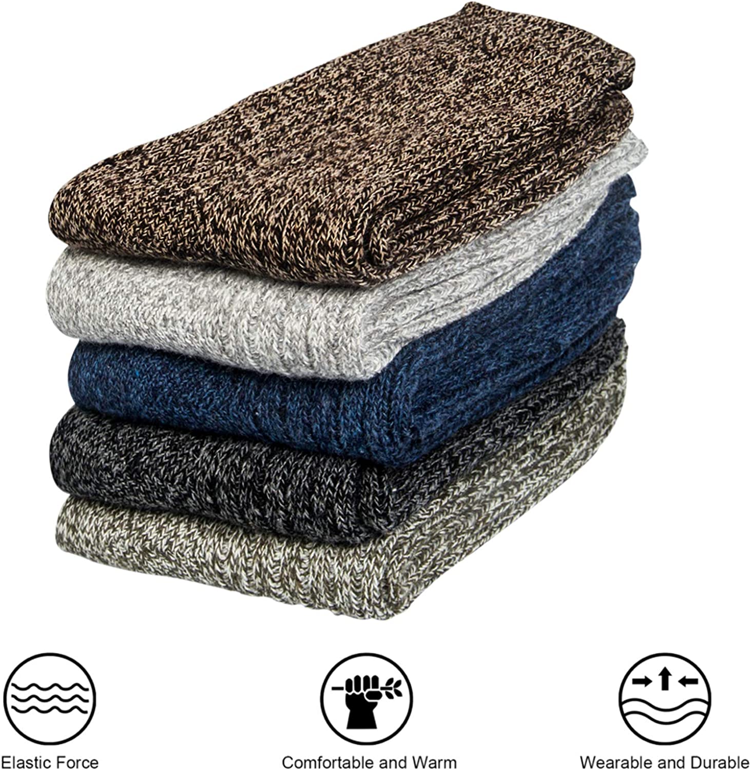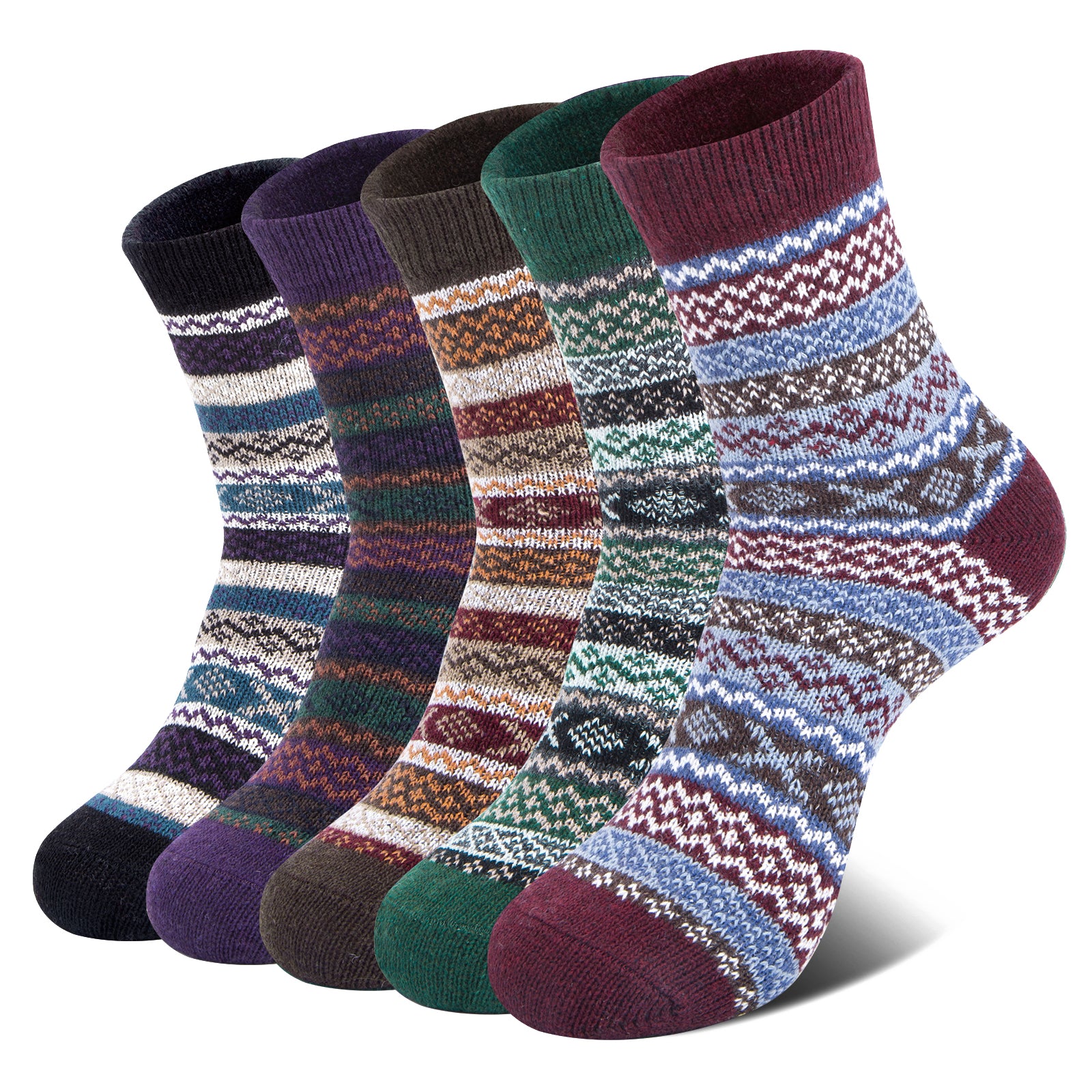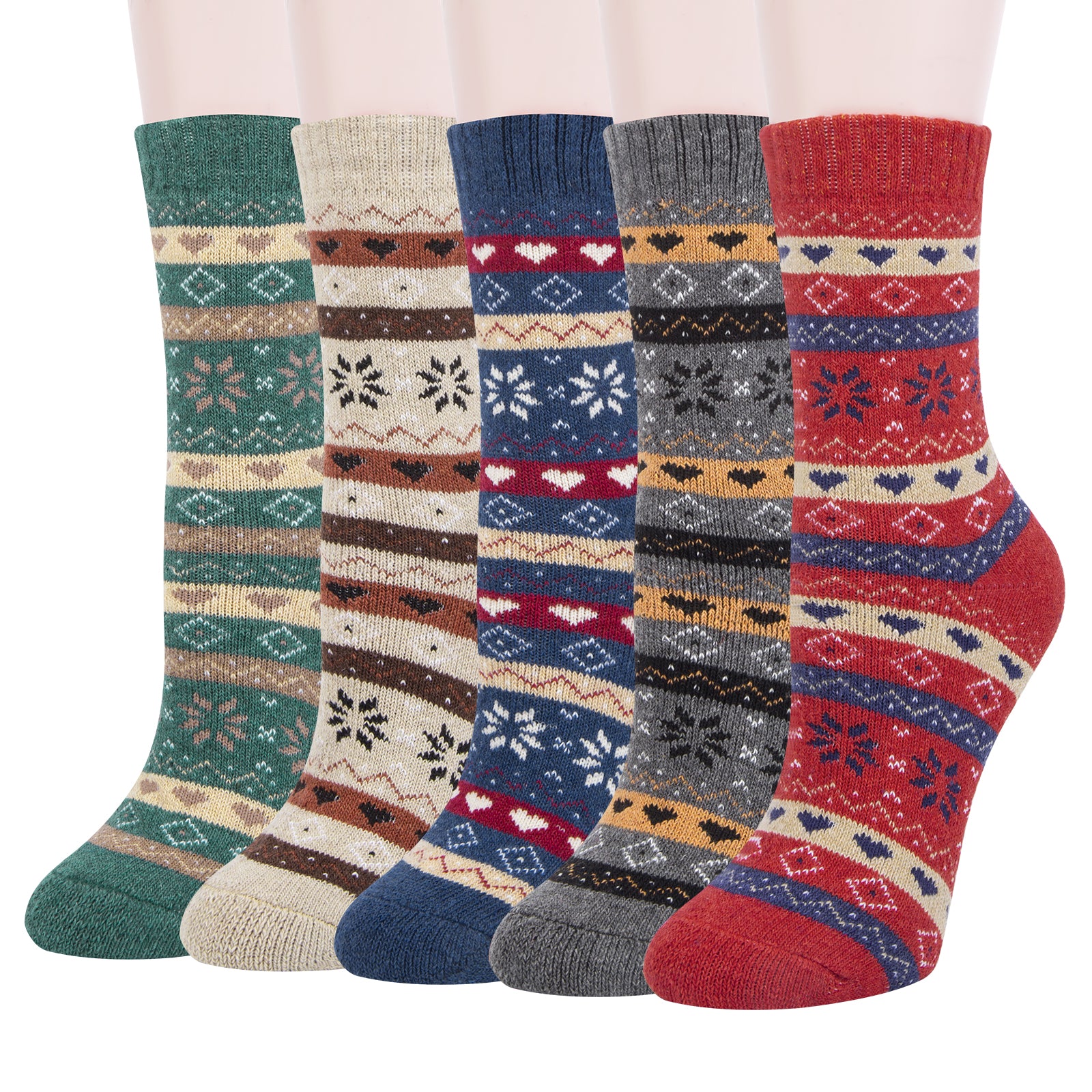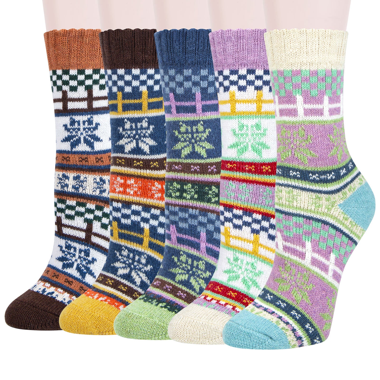 Pack of 5 Womens Winter Socks Warm Thick Knit Wool Soft Vintage Casual Crew Socks Gifts