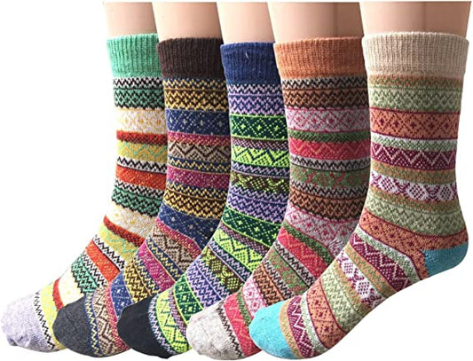 5 Pairs Womens Wool Socks Vintage Soft Cabin Warm Socks Thick Knit Cozy Winter Socks