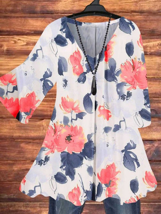 2023 V-neck solid color patchwork loose T-shirt top for women