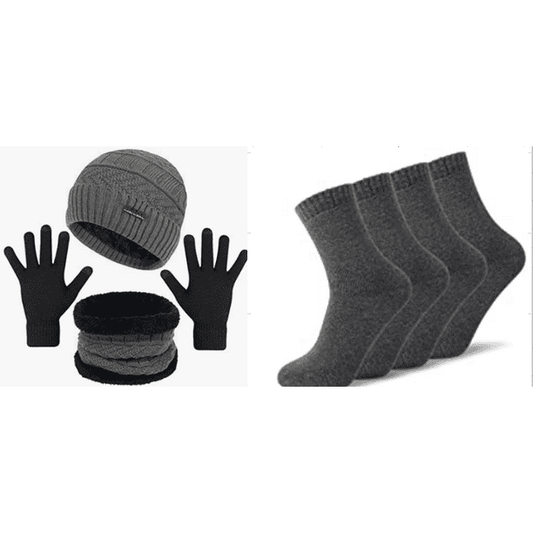 5Pcs Black Winter Beanie Hats Scarf and Touch Screen Gloves Set for Men and Women